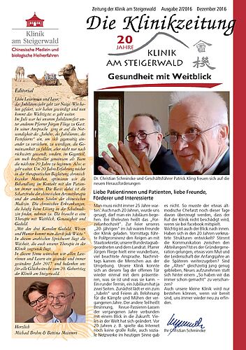 In diesem Sinne wünschen wir allen Leserinnen und Lesern ein gesundes und immer gesünderes Jahr 2017 und bedanken uns für alle Glückwünsche zum 20. Geburtstag der Klinik am Steigerwald.