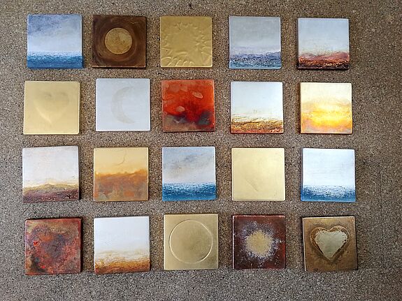 Damit das große Wandbild keine „Lücken“ aufweist, hat die Künstlerin nun 20 neue Bildtafeln gestaltet und nur für unsere Patienten geschaffen. Wir sind wie immer begeistert von den so ausdrucksstarken Kleinen Bildern. Stephanie von Thun arbeitet inzwischen mit ihrer Technik großformatig, nur aus Verbundenheit mit der Klinik hat sie diese Bildtafeln erneut in dieser Größe gestaltet, um diese schön Tradition der „künstlerischen Begleitung“ am Bett nicht abreißen zu lassen.