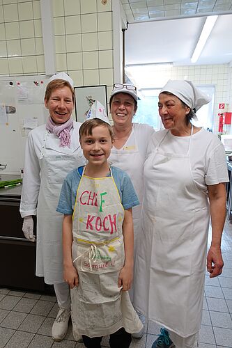 Samuel Decker ist ein Star unter den Patienten der Klinik. Der Junge unternimmt vieles zusammen mit Kliniklehrerin Natascha Reiter. Neben den therapeutischen Impulsen und pädagogischen Projekten hat Samuel Freude daran, den im Klinikwald fast überall wachsenden Bärlauch zu sammeln. Das kräftig nach Knoblauch riechende Kraut findet den Weg in die Klinikküche. Dort verarbeitet Samuel unter tatkräftiger Anleitung der Küchenchefinnen den Bärlauch zu Pesto und serviert ihn seinen Mit-Patienten. Zum Dank dafür bemalen seine neuen Genuß-Freunde eine Schürze. Für kurze Zeit übernimmt Samuel die Küche als neuer Chefkoch.